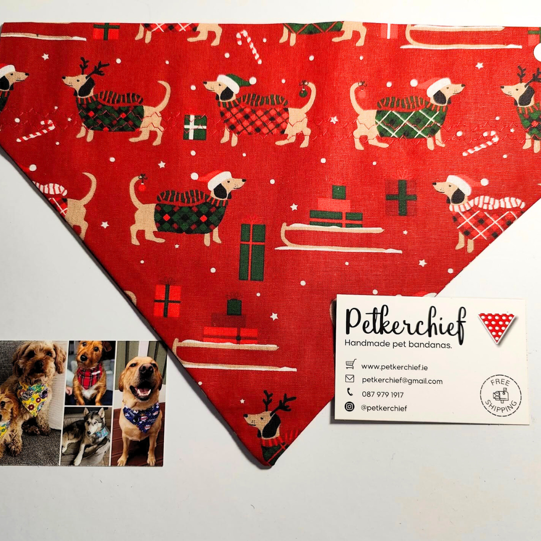 From cozy plaids to playful reindeer prints, our handmade Christmas bandanas bring holiday magic to dogs of every shape and size. Each one is crafted with love and care - and with worldwide shipping, festive style is ready to reach pups wherever they are!